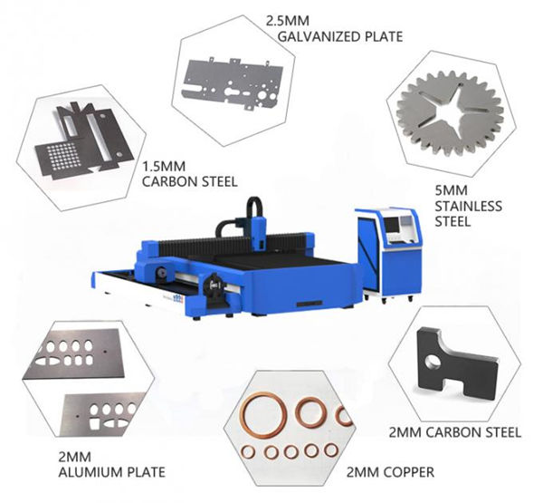 * Bi taybetî ji bo qutkirina karbonê karbonê 0.5-6 mm, pola zengilî 0,5-5 mm, pola galvanizandî, zincîra polayê zîl-elektrolîtîk, fîlîla silicon û celeb celebên metal ên nermîn tête bikar anîn.1000W dikare 3 mm aluminium û 2 mm bakûr qul bike.